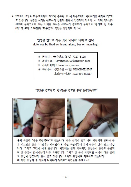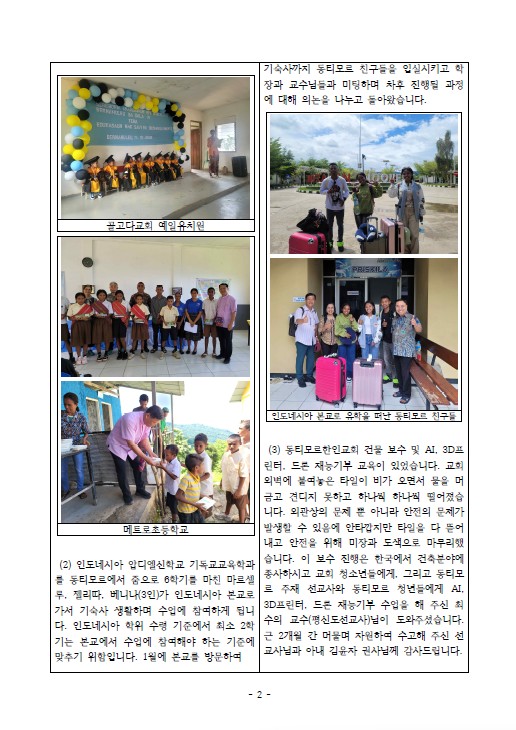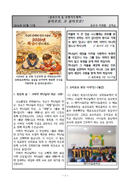 은혜 선교회에서 후원하는 동티모르 이대훈, 김차순 선교사님의 26년2월21일자 선교통신 공유 드립니다.