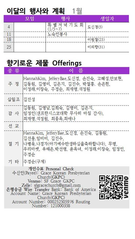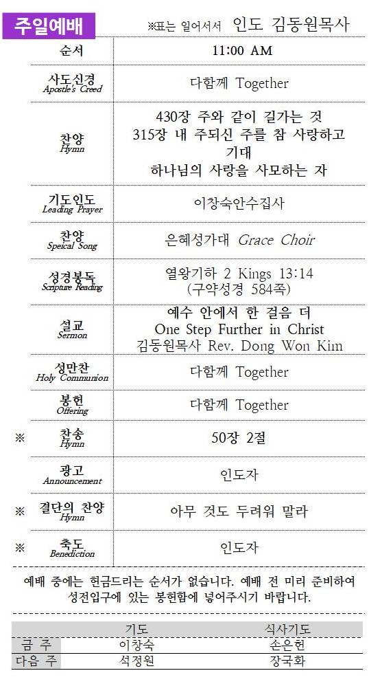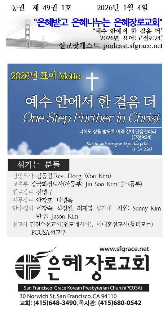 ① 신년주일 New Year Sunday 오늘은 신년주일입니다. 예배 중에 성만찬이 있습니다.