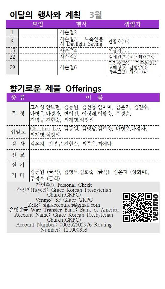 ③ PCUSA상회비 Per Capita 상회비헌금에 참여해주세요.(1인 $45)