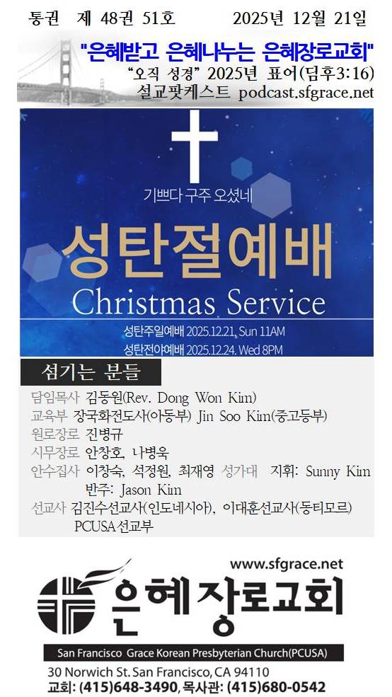 ■ 성탄예배 Christmas Service 12/24(수) 8:00pm 모입니다.(저녁식사 6:30)