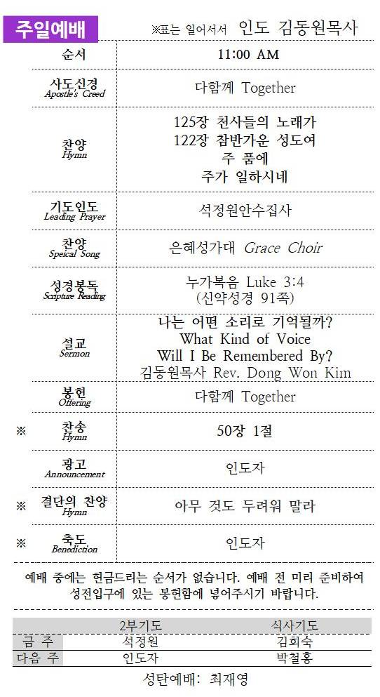 ■ 송구영신예배 New Year Service 12/31(수), 8:00pm(저녁식사 6:30)