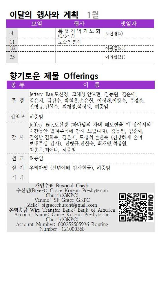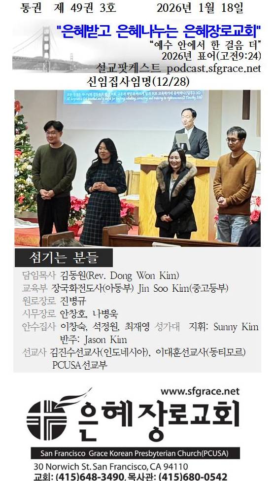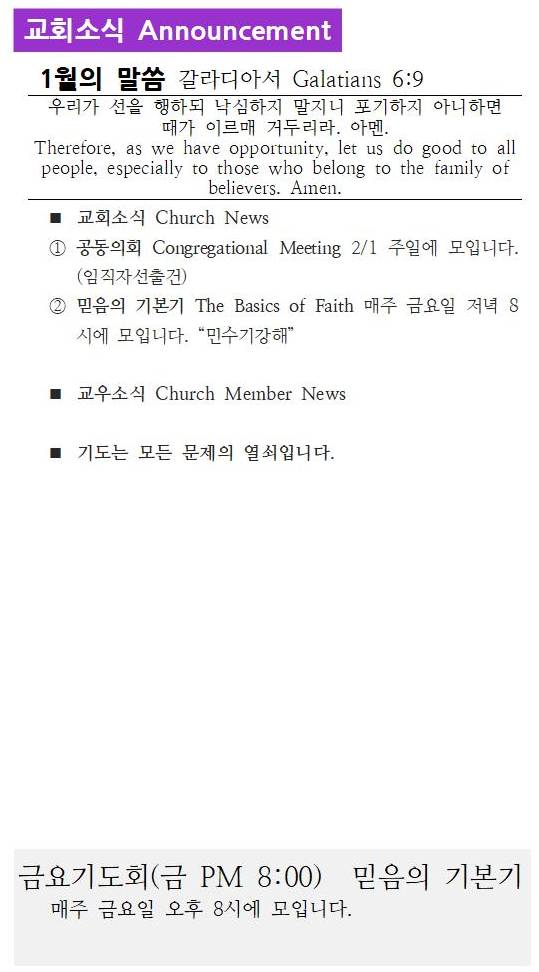 ① 공동의회 Congregational Meeting 2/1 주일에 모입니다.(임직자선출건)