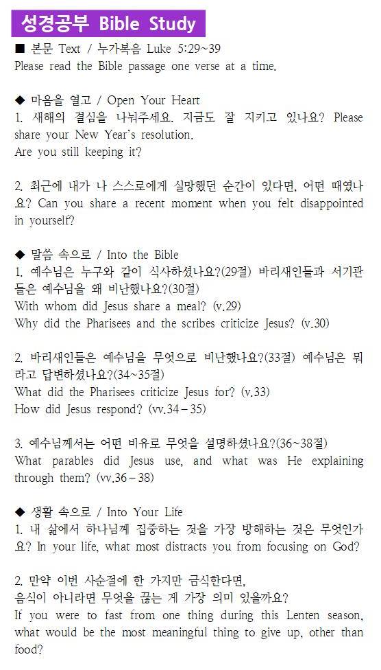 ② 믿음의 기본기 The Basics of Faith 매주 금요일 저녁 8시에 모입니다. “민수기강해”